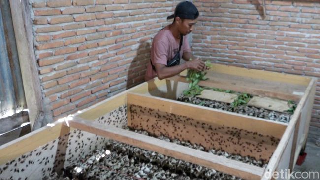 "Prosesnya itu 25 hari sudah siap panen, makanya jarak panen diatur, setiap kali panen jaraknya sepuluh, sepuluh hari, dalam tiga kotak keliling sebulan bisa panen tiga kali. Satu kotak bisa dapat 15 kilogram, paling banyak 20 kilogram, dijual seharga 80 ribu rupiah per kilogram," jelasnya.