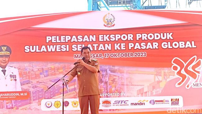Penjabat (Pj) Gubernur Sulawesi Selatan (Sulsel) Bahtiar Baharuddin melepas ekspor 37 komoditas unggulan senilai Rp 1,45 triliun ke 29 negara. Barang yang diekspor beragam mulai dari ikan tuna, kopi, hingga mie instan.