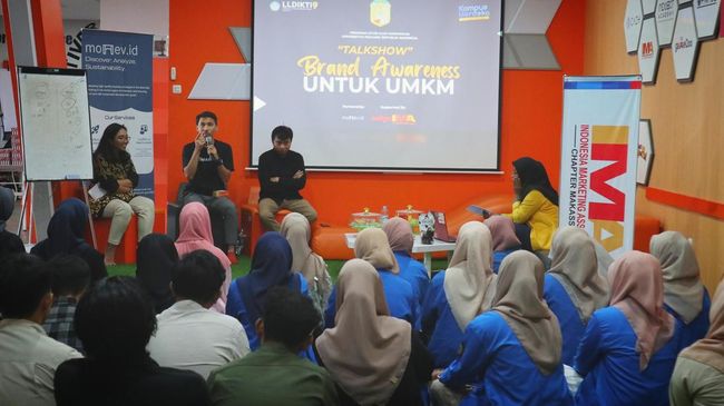 Mahasiswa di Kota Makassar, Sulawesi Selatan (Sulsel) didorong menjadi pengusaha lewat talkshow bertajuk Brand Awareness untuk UMKM. Dalam acara itu, para pelaku usaha mikro, kecil dan menengah (UMKM) turut didorong memperluas pasar dengan cara memaksimalkan merek dagangnya.
