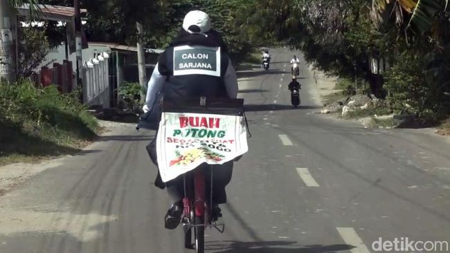 Mahasiswi bernama Andi Riza Ardia (26) di Kabupaten Majene, Sulawesi Barat (Sulbar), rela menjadi penjual buah keliling menggunakan sepeda yang dikayuh sejauh belasan kilometer (Km). Ardia yang merupakan seorang perantau mengaku ingin mandiri untuk mewujudkan mimpinya menjadi sarjana.