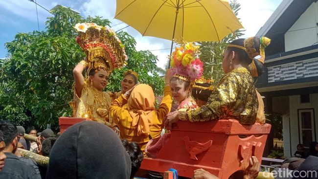"Yang dikhususkan untuk ditandu itu hanya anak perempuan saja. Yang laki-laki jalan kaki. Tapi laki-laki kan mereka jalan. Yang ditandu kan perempuan. Laki-lakinya itu mengikut pemangku adat mereka yang di depan itu," kata Mursalim, salah seorang warga yang mengikuti upacara tersebut kepada detikcom, Sabtu (3/9/2022).