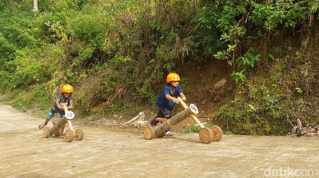 "Anak-anak di sini sudah tidak takut lagi meluncur karena sudah biasa. Bahkan lebih tinggi jaraknya mereka lebih suka itu," ucap Muslimin.