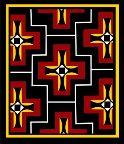 - Hitam menandakan arah mata angin selatan, sebagai simbol kembali ke awal sebelum terang diciptakan, dan bersemayamnya arwah orang mati.