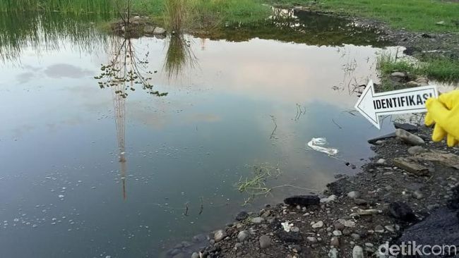 Aparat kepolisian setempat mendatangi lokasi tenggelamnya korban Qadrian. Tampak aparat melakukan proses olah tempat kejadian perkara atau TKP di kubangan bekas galian Stadion Mattoanging. (Foto: detikSulsel/Muh Ishak Agus).