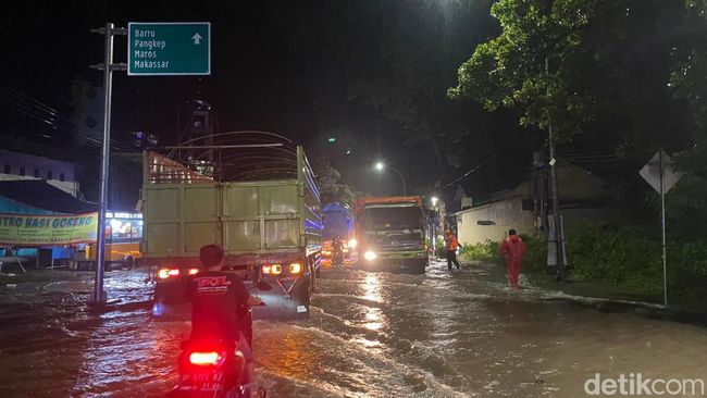 Potret Jalan Trans Sulawesi di Parepare Banjir, Lalin Sempat Macet 5 Km
