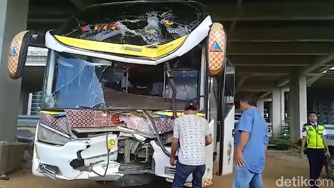 Potret Kerusakan Bus Penumpang usai Tabrak Gerbang Loket Bandara di Makassar