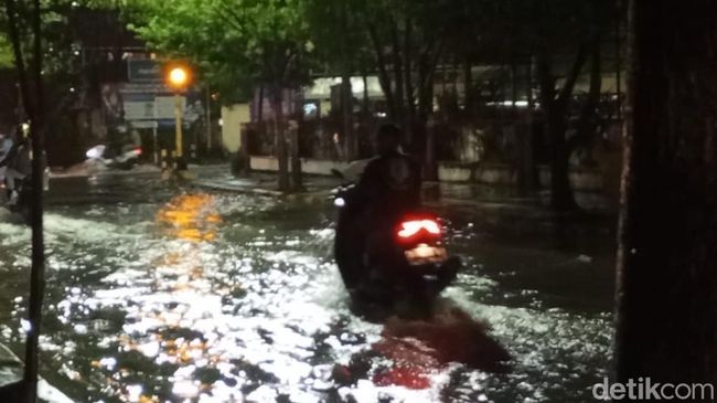 Palopo - Sejumlah jalan protokol di Palopo, Sulsel terendam air usai 3 jam diguyur hujan sejak Sabtu (14/10) malam hingga Minggu dini hari. Intensitas hujan cukup deras.