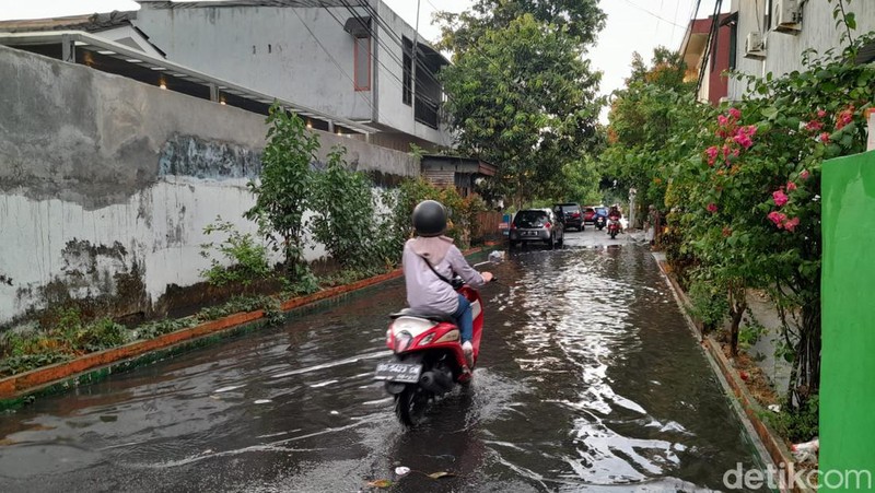 Foto: Genangan air di Jalan Todopuli Raya 2, RW 07, Kecamatan Panakukang, Makassar usai dilanda hujan deras pascakemarau panjang. (Muhammad Darwan/detikSulsel)