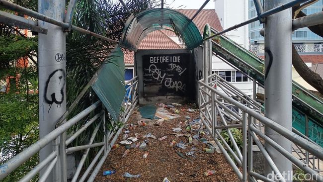 Makassar - Jembatan penyeberangan orang (JPO) di Jalan Jenderal Sudirman, Makassar, Sulawesi Selatan, sangat memprihatinkan. Kondisinya terbengkalai bagaikan kota mati.