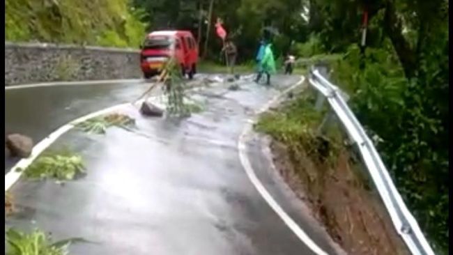 "Ini sekarang petugas masang tanda atau rambu, untuk berhati-hati melewati jalur tersebut. Karena ada sebagian badan jalan terkena longsoran dan mengganggu pemakai jalan yang melintas," kata dia.