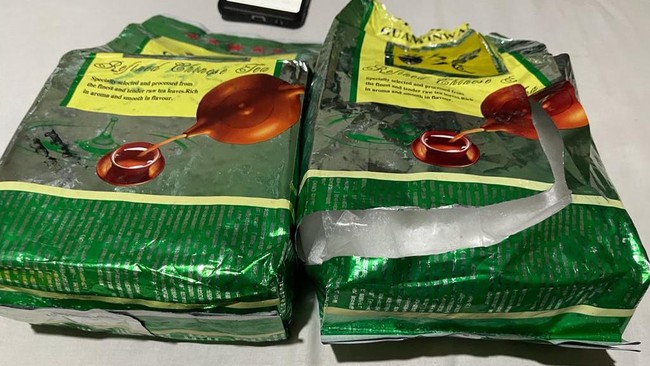 "Pelaku menyembunyikan barang (2 kg sabu) di dua bungkus deterjen (sabun cuci) yang diisi bungkusan teh Cina Guanyiwang," ungkapnya.