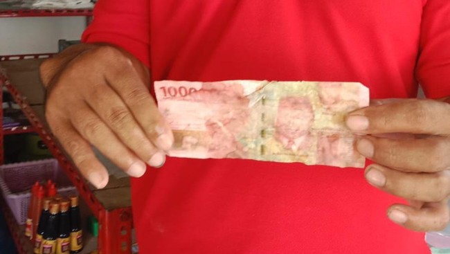 Uang palsu dengan pecahan Rp 100 ribu diduga beredar di Kabupaten Bone, Sulawesi Selatan (Sulsel). Seorang pedagang menjadi korban penipuan terduga pelaku yang hendak membeli barang dagangan di kiosnya.