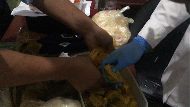 "Awalnya kita belah daging semur tapi tidak menemukan apa-apa. Namun setelah daging gulai kita belah kita menemukan sabu ini," katanya.