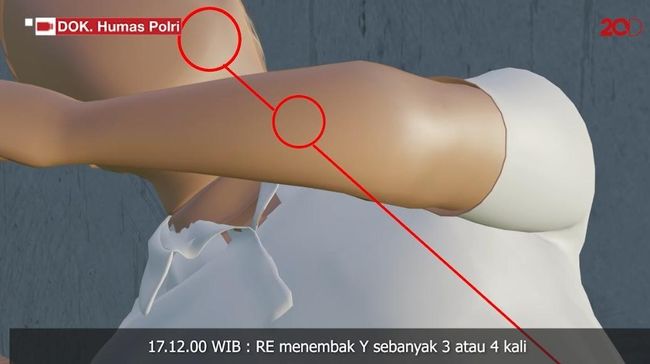 Dilansir dari detikNews pada Rabu (31/8/2022), hal itu terlihat dari video animasi rekonstruksi pembunuhan Yosua yang dirilis oleh Polri. Terlihat tembakan yang dilepaskan Bharada E mengenai 4 bagian tubuh Brigadir J hingga akhirnya jatuh tersungkur.