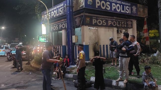 Pos Polisi Lalu Lintas (Polantas) di Kota Makassar, Sulawesi Selatan (Sulsel) dilempari bom molotov oleh orang tak dikenal (OTK). Pelaku menuliskan pesan terkait tragedi Kanjuruhan yang menewaskan 125 suporter Arema FC.