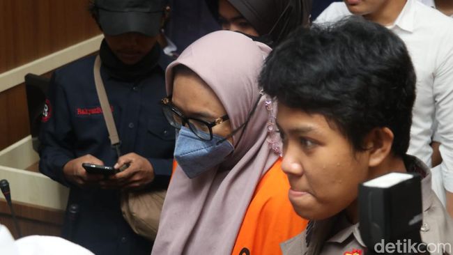 Selvi juga mengenakan masker biru. Saat dibawa petugas, tersangka tak mengucapkan sepatah kata pun dan cenderung menunduk.