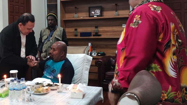 "Ketemu juga dengan ibu Lukas Enembe dan ketemu saudara beliau bahkan saya sempat rangkulan dengan kakak perempuan beliau dengan hangat penuh kekeluargaan," kata Lukas.