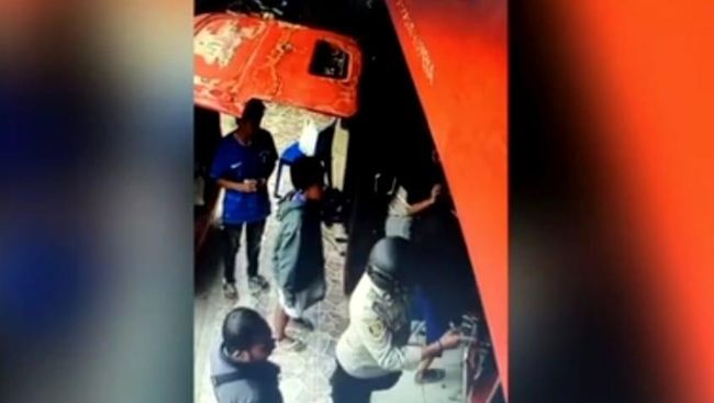 Tampak korban dianiaya bertubi-tubi, namun Iptu YW yang berpakaian lengkap dan berdiri di dekat korban justru cuek.