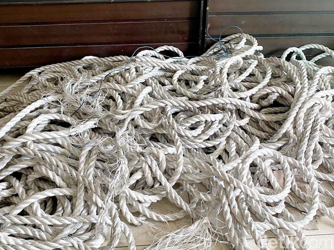 Pantauan detikSulsel di lokasi, Kamis (22/12/2022), tali tambang diletakkan di area Satuan Reskrim Polrestabes Makassar. Tali tambang berwarna putih ini sudah tampak kusam.