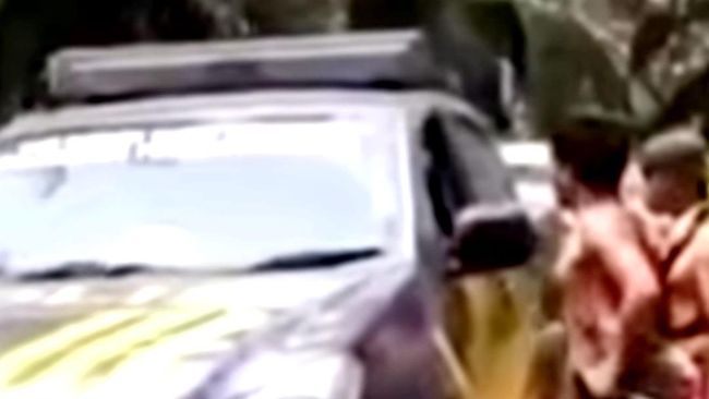Dalam video beredar, orang-orang tersebut memaki sambil menunjuk-nunjuk ke arah polisi yang berada di dalam mobil. Mereka memerintahkan para polisi untuk turun dari kendaraan.
