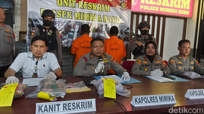 "Pelaku pembunuhan itu berinisial RGJ dan YN yang di mana keduanya ditangkap di lokasi yang berbeda yakni di Jalan Petroresa dan Jalan Serui Mekar l, Sabtu (11/2)," ungkap Kapolres Mimika AKBP I Gede Putra, dalam keterangan tertulis yang diterima detikcom, Selasa (14/2/2023).
