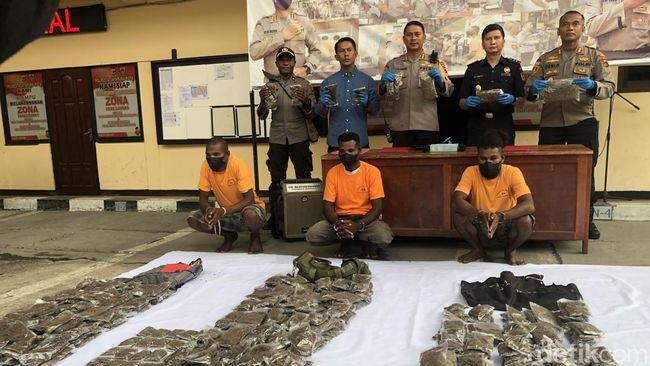 "Jadi ada 3 warga negara PNG yang kami tangkap saat melakukan transaksi jual beli narkotika jenis ganja. Dari tangan mereka 11 Kg ganja berhasil kami amankan," ungkap Kapolresta Kota Jayapura, Kombes Victor Mackbon saat konferensi pers, Rabu (22/2/2023).