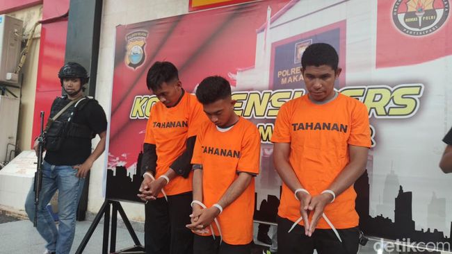 Ketiga tersangka sempat dihadirkan saat polisi melakukan jumpa pers terkait kasus ini di Polrestabes Makassar, Senin (20/3). Ketiga tersangka yang belum disebutkan identitasnya itu tampak mengenakan baju tahanan.
