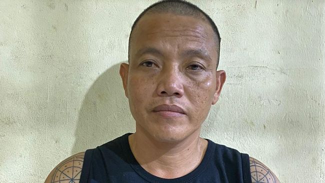 Dari foto terbaru yang diterima detikcom, terlihat pelaku mengenakan baju kaos hitam tanpa lengan. Dia menghadap ke depan dengan pandangan lesu. Rambutnya sudah dicukur habis.