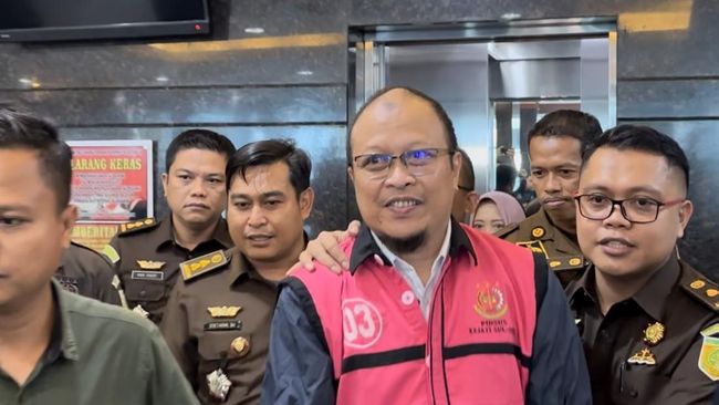 Setelah menjalani pemeriksaan pada Selasa (11/4) pukul 17.00 Wita, Haris Yasin Limpo dan Irawan Abadi muncul dari lift gedung Kejati Sulsel. Keduanya sudah dalam kondisi mengenakan rompi tahanan berwarna pink.