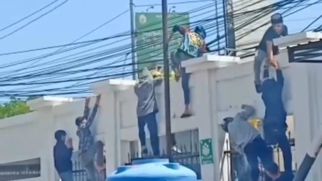 Sementara di video lainnya, terlihat sejumlah simpatisan menaiki pagar Kantor Kejati Sulsel, terdengar seorang berkata 'id card, id cardnya media, periksa id cardnya'. Terlihat pula seorang pria memakai baju kuning bertopi merah menggertak orang yang sedang merekam.