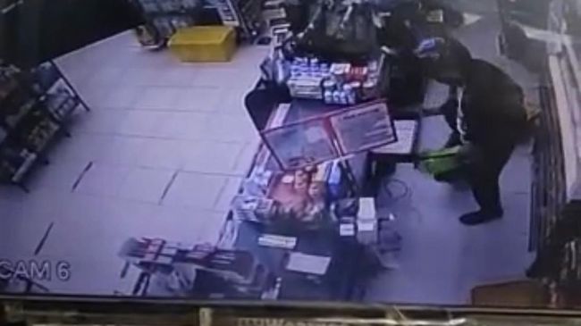 Seorang pria dengan jaket dan helm tertutup melakukan aksi perampokan di sebuah minimarket di Tanah Laut, Kalimantan Selatan (Kalsel). Aksi pelaku yang membawa golok terekam kamera CCTV.