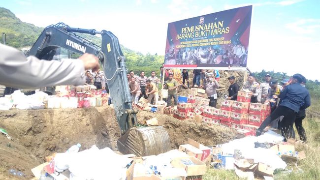 "Barang temuan yang kami musnahkan berupa 2.901 liter minuman beralkohol tanpa izin," ungkap Kapolresta Gorontalo AKBP Ade Permana kepada wartawan, Selasa (2/5/2023).