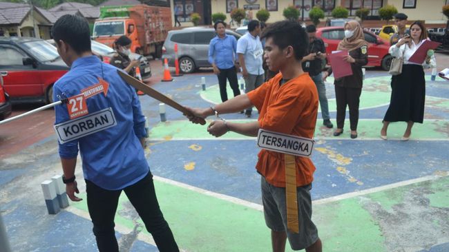 "Jadi di adegan itu pelaku membacok korban sebanyak satu kali hingga korban tak sadarkan diri," ujar Asriadi.