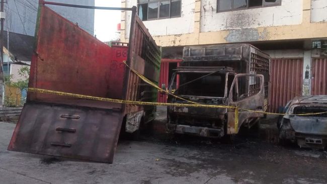 "Dia merasa kecewa dia beraksi dibakarnya lah talinya (mobil) itu. Awalnya talinya aja yang dibakar, tau-tau merembes sampai ke semuanya truk 2, 1 Brio," kata Yudi Frianto.
