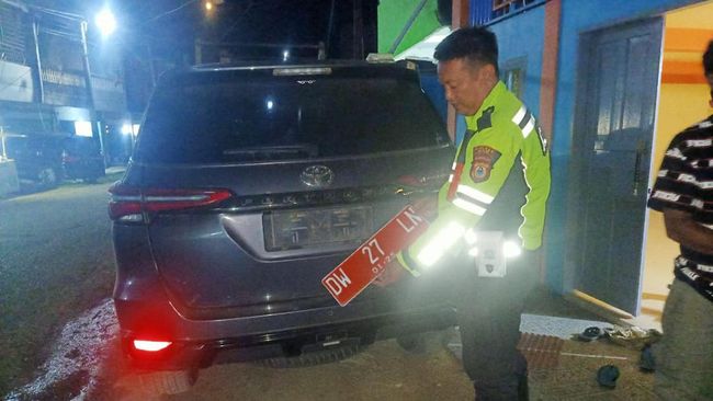 Nawir mengatakan mobil Fortuner berwarna abu metalik atas nama Andi Lani menggunakan pelat palsu dengan nomor polisi DW 27 LN dengan warna pelat merah. Pelat asli kendaraan itu sesuai STNK yakni DW 1642 LY.