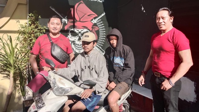 Sedangkan Andika menggunakan jaket berwarna abu-abu serta menggunakan topi. Keduanya duduk di atas sepeda motor yang digunakannya saat melakukan aksi perampokan di toko kelontong.
