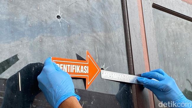 "Pada saat ibu sedang memberikan les tiba-tiba ibu mendengar suara kaca suara 'tak..tak..' sebanyak dua kali. Setelah begitu ibu melihat ternyata ada retakan kaca dan ada lubang kaca sebanyak 2 lubang," jelasnya.