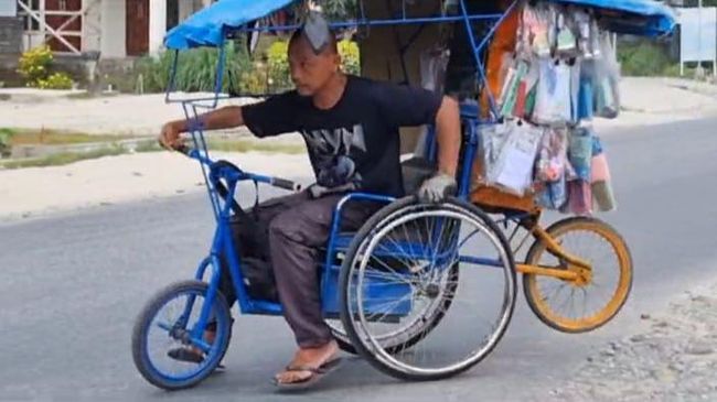 Pasangan suami istri (pasutri) penyandang disabilitas di Luwu Utara, Sulawesi Selatan (Sulsel), Risal Kamba dan Marwa Mawar rela menjadi pedagang keliling untuk bertahan hidup. Mereka menolak berpangku tangan menunggu uluran tangan orang lain.