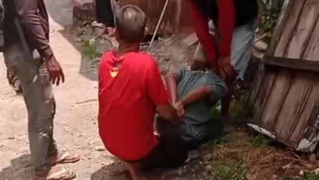 Dalam video beredar, tampak pelaku yang mengenakan kaos berwarna abu-abu diamankan warga. Kepalanya terlihat dipiting oleh warga yang mengamankannya.