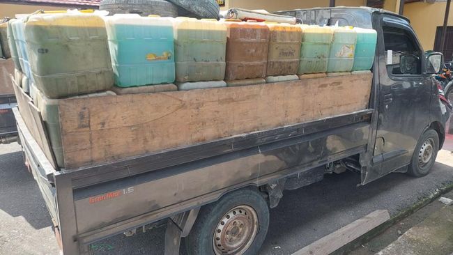 "Total barang bukti yang diamankan itu ada 228 jeriken BBM dengan berat total keseluruhan 5 ton, selain itu dua mobil pikap milik pelaku yang digunakan untuk mengangkut BBM turut kita amankan," ucapnya.