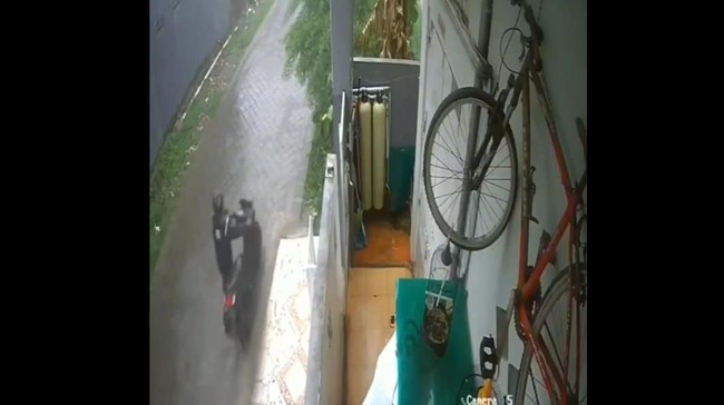 Pelaku yang datang menggunakan jas hujan dari arah dalam lorong lalu mendekati motor korban yang tengah terparkir. Pelaku yang mengetahui motor tersebut tidak dalam keadaan terkunci stang, kemudian mendorong motor itu masuk kembali ke arah dalam lorong.