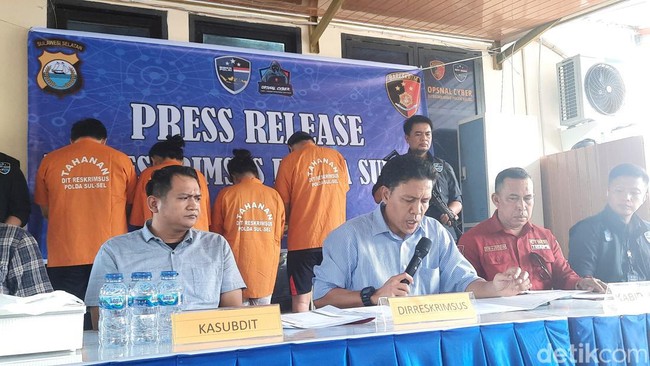"Bahwa 4 orang tersangka yang berhasil ditangkap (suami istri), 2 wanita dan 2 pria," ujar Dirkrimsus Polda Sulsel Kombes Helmi Kwarta Rauf kepada wartawan, Kamis (14/12/2023).
