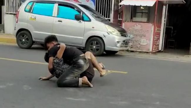 Dalam video beredar, tampak kedua pemuda terlihat baku pukul hingga bergulat di tengah jalan raya. Warga di sekitar lokasi kejadian sempat tampak kesulitan memisahkan kedua pemuda.