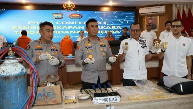Polda Sulawesi Utara (Sulut) menggagalkan penjualan emas ilegal seberat 10 kilogram (Kg) saat hendak diberangkatkan lewat Bandara Internasional Sam Ratulangi Manado. Polisi turut menangkap 3 orang berinisial LS (58), MR (35), dan RH (36).