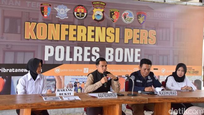 Polres Bone, Sulawesi Selatan (Sulsel) menangkap 71 pelaku narkoba selama periode April hingga Mei 2024. Mereka yang diamankan terdiri 5 orang bandar, sedangkan 66 lainnya adalah pemakai dan kurir narkoba.