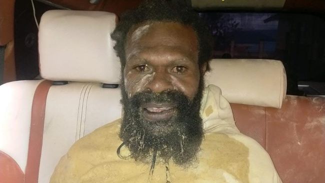 Pada jaket bagian depan dan wajah Petrus tampak ada bekas tanah. Petrus kini diamankan di Polres Nabire.