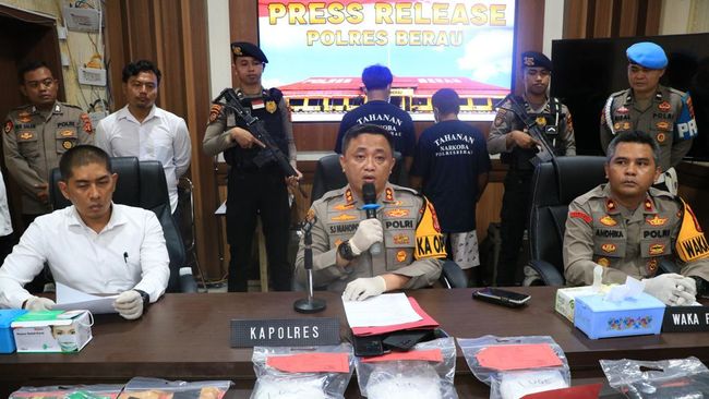 Dua pria berinisial FD dan SL ditangkap polisi usai kedapatan menyembunyikan narkotika jenis sabu asal Malaysia di dalam hutan Pulau Kakaban, Berau, Kalimantan Timur (Kaltim). Dari tangan kedua pelaku, polisi mengamankan 6 kilogram (kg) sabu.