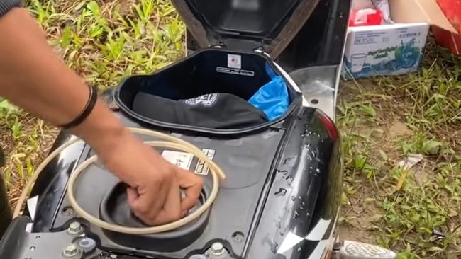 Namun saat hendak pulang pada Minggu (26/5) pagi, dirinya menemukan jok motornya dalam keadaan terbongkar. Barang-barang di dalam jok motor, baik sepatu dan celana hilang.