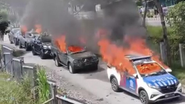 "Iya, sejumlah mobil dirusak dan dibakar sebanyak 6 unit mobil Apkam (aparat keamanan) TNI/Polri," kata Letkol Candra.