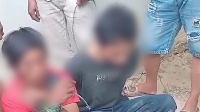 Dari video dilihat detikcom, tampak dua pria dalam kondisi babak belur di bagian wajah dan bibir. Tangan keduanya juga diikat menggunakan tali. Warga pun terdengar geram dari balik video.